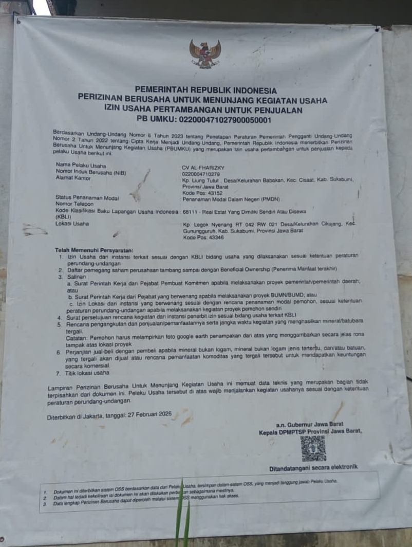 Melalui langkah nyata di lapangan, CV Alfharizky bersama PT Cicatih Putra Sukabumi (PT CPS) menunjukkan komitmennya dalam menjaga kenyamanan publik di ruas Jalan Kampung Legoknyenang, Desa Cikujang, Kecamatan Gunungguruh, Kamis (23/4/2026).